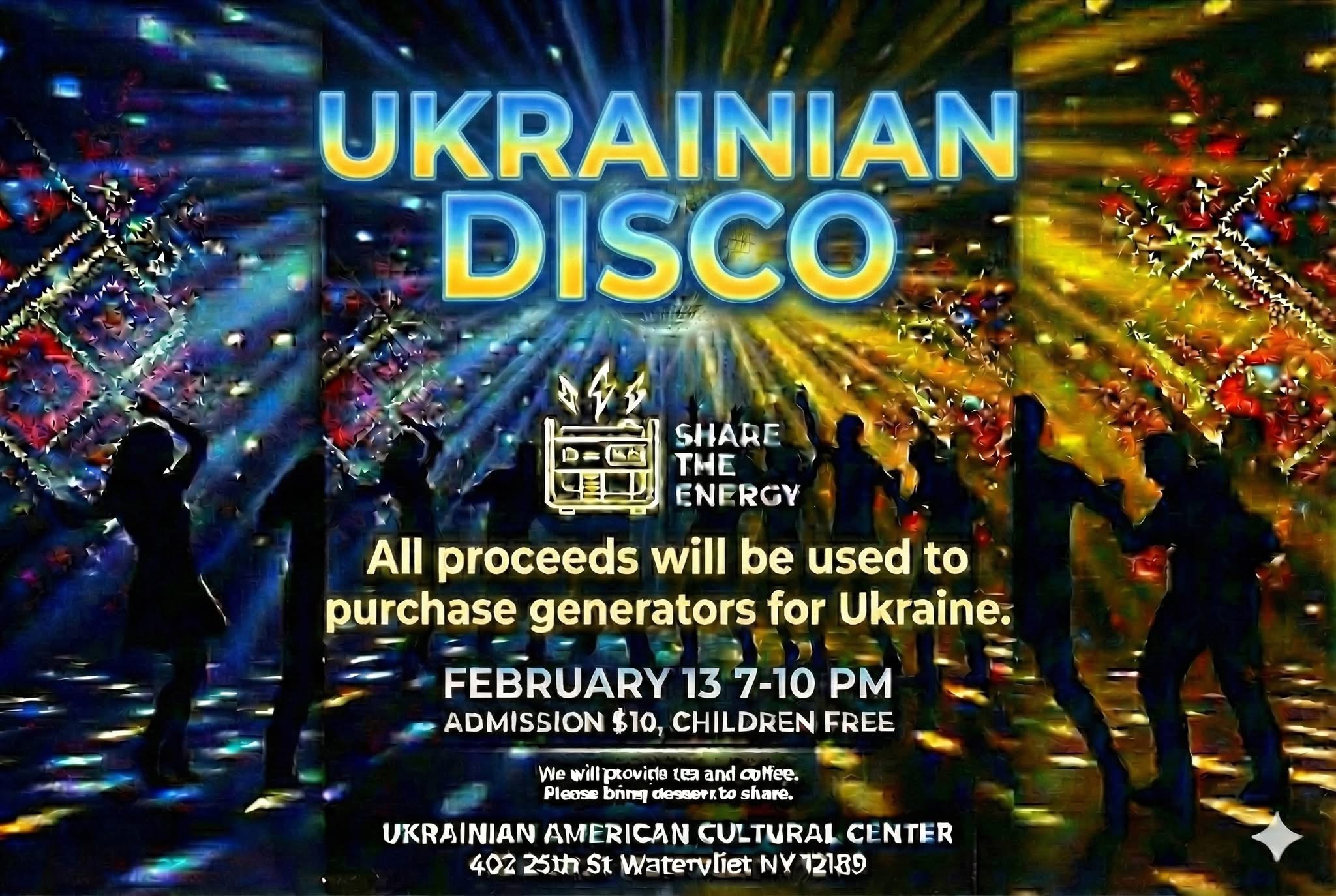 Watervliet, NYDance the night away at the Ukrainian Center and Share Your Energy: all proceeds will be used yo purchase generators for Ukraine. We will provide coffee and tea, you can...