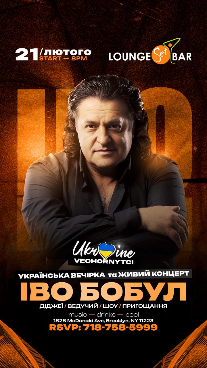 Kaif.events.usa invites you to a charity Ukrainian Party as part of the UKRAINE VECHORNYTSI event featuring special guest Ivo Bobul.